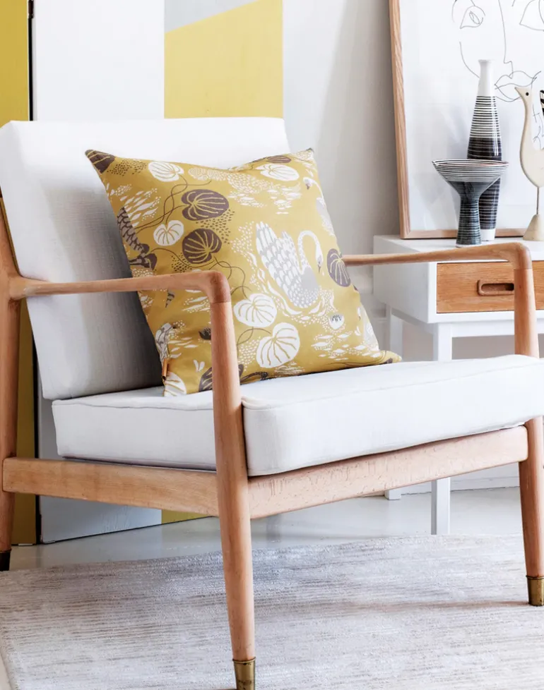 It is printed by our Master printers on our beautiful and sustainable high quality linen/cotton weave, which is lively and make our patterns age with grace.