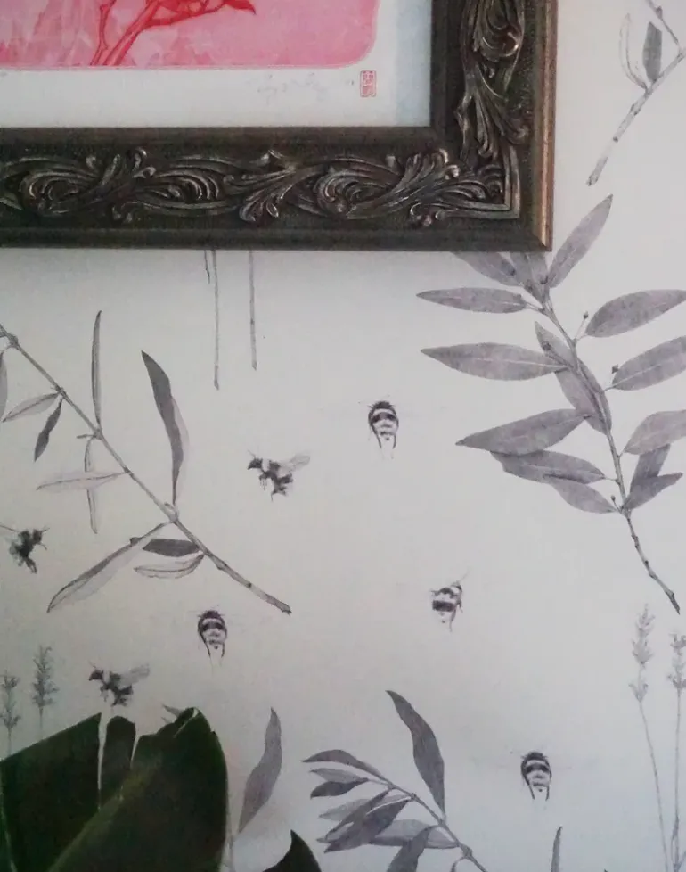 In Northern California bees buzz throughout the summer in fields of lavender situated within the native bay and thriving olive trees. This pattern reminds you that beauty is found in simple things and bees are a precious part of our surroundings.