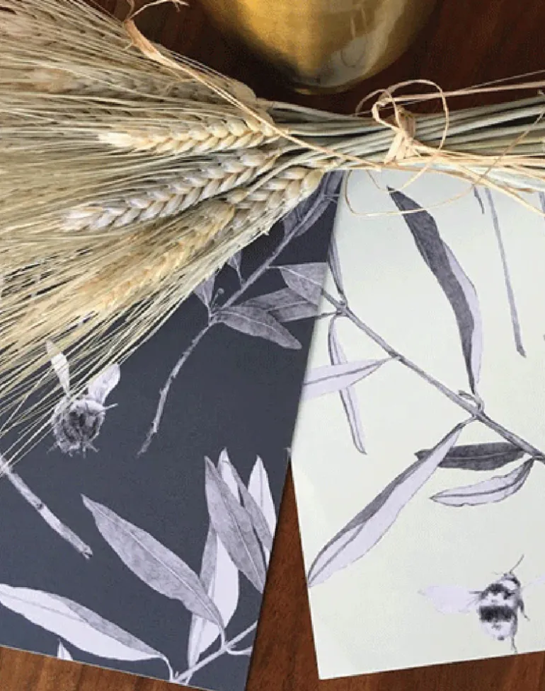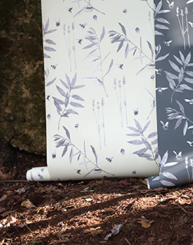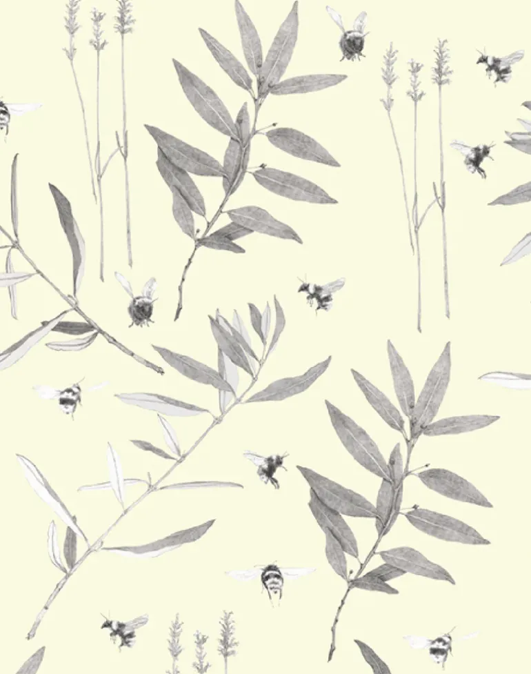 In Northern California bees buzz throughout the summer in fields of lavender situated within the native bay and thriving olive trees. This pattern reminds you that beauty is found in simple things and bees are a precious part of our surroundings.