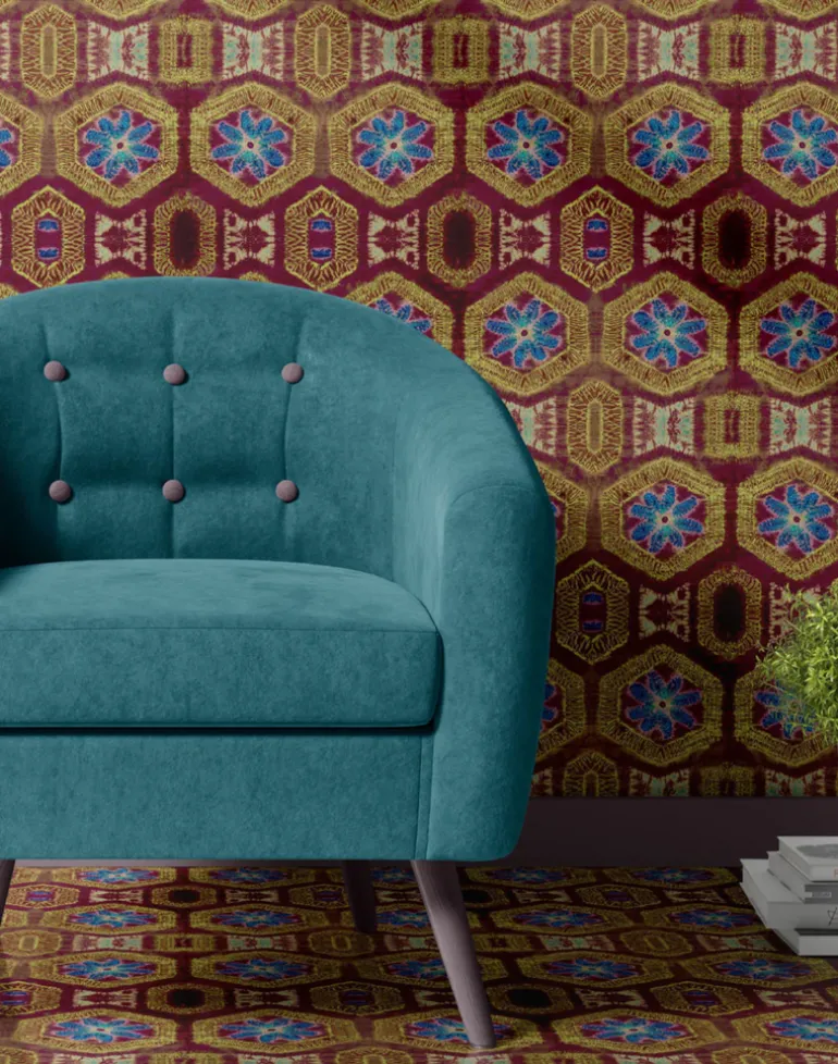 Inspired by the brilliance of Mother Nature, the magic of India, and the beauty of ancient Japanese crafts, Louise designs a new Tatie Lou collection of original prints annually. Created through a mixture of shibori dyeing, hand and digital drawing, and painting, each signature print is digitized and transformed into a suite of different colorways before being applied to wallpapers & fabrics.