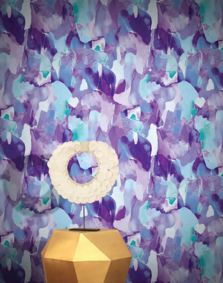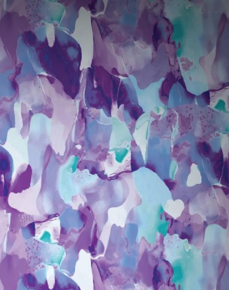 Much of illustrator Anna Alanko’s work experiments with natural processes or gestural abstraction. The abstract wash of NYE was created by allowing acrylic paints to mix slowly together on a tilted canvas.
