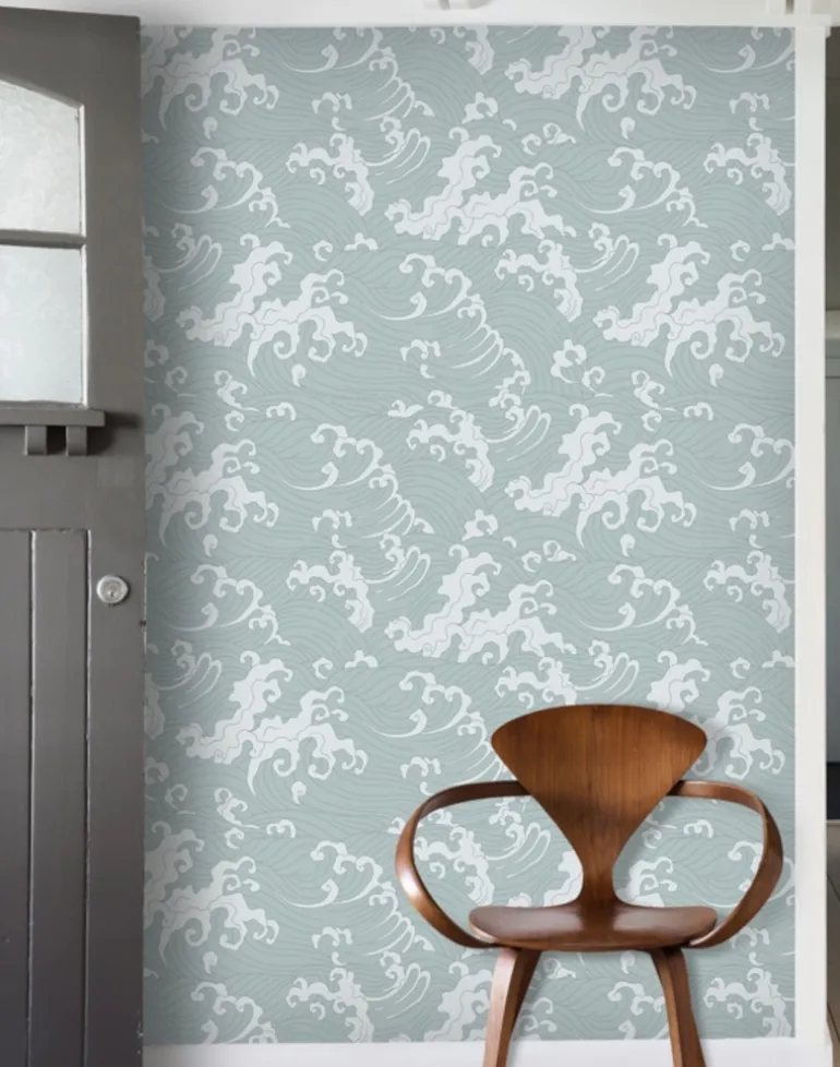 Watch the ocean waves roll in this Japanese wave wallpaper featuring a traditional Japanese wave motif in vintage-style soft pastel colors.