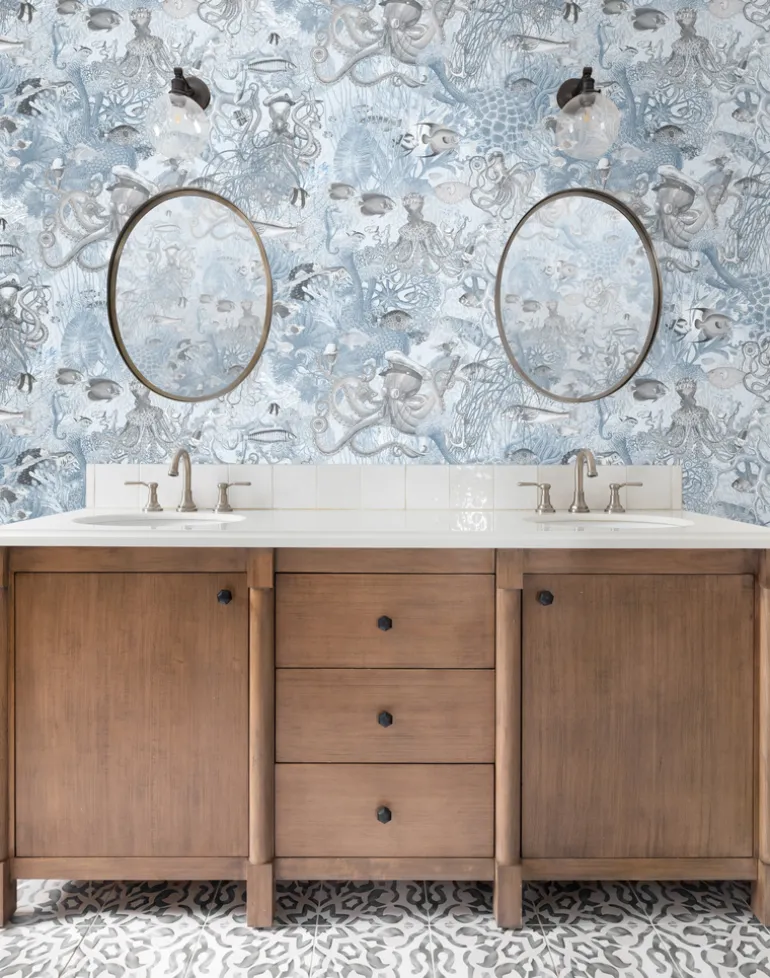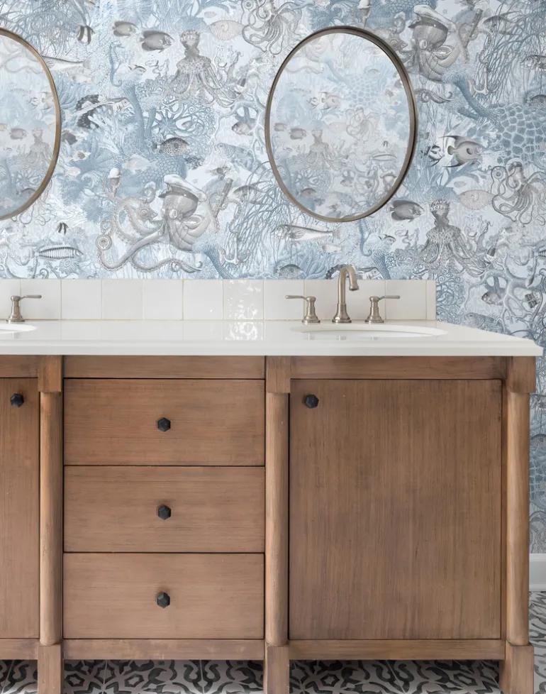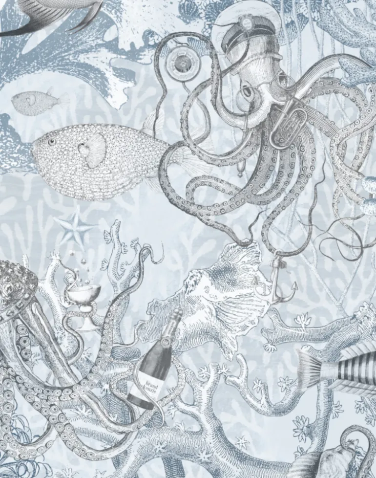 Embark on a journey into the mesmerizing depths of the ocean with our Octopus wallpaper. This captivating design immerses you in an underwater world that pulses with life and color. Imagine yourself surrounded by the vibrant hues of coral formations and the lush textures of seabed plants, creating a rich tapestry that draws you into its aquatic embrace. Yet, this is no ordinary marine scene—at the heart of this design, the octopus reigns supreme, sporting a quirky sailor hat that injects a delightful touch of whimsy and character into this underwater tableau.