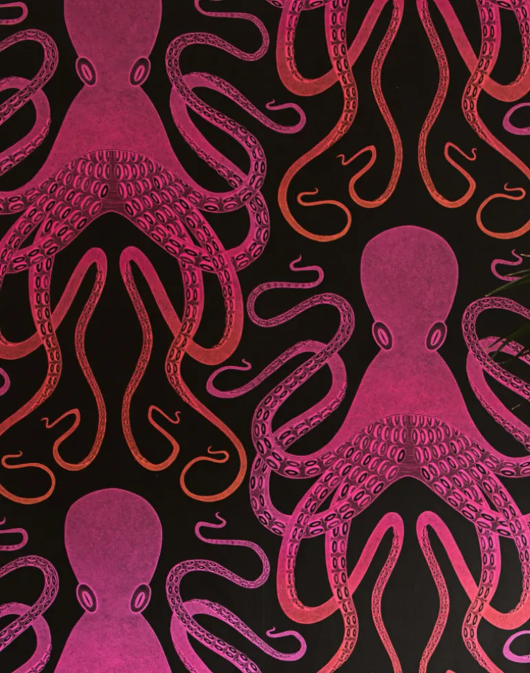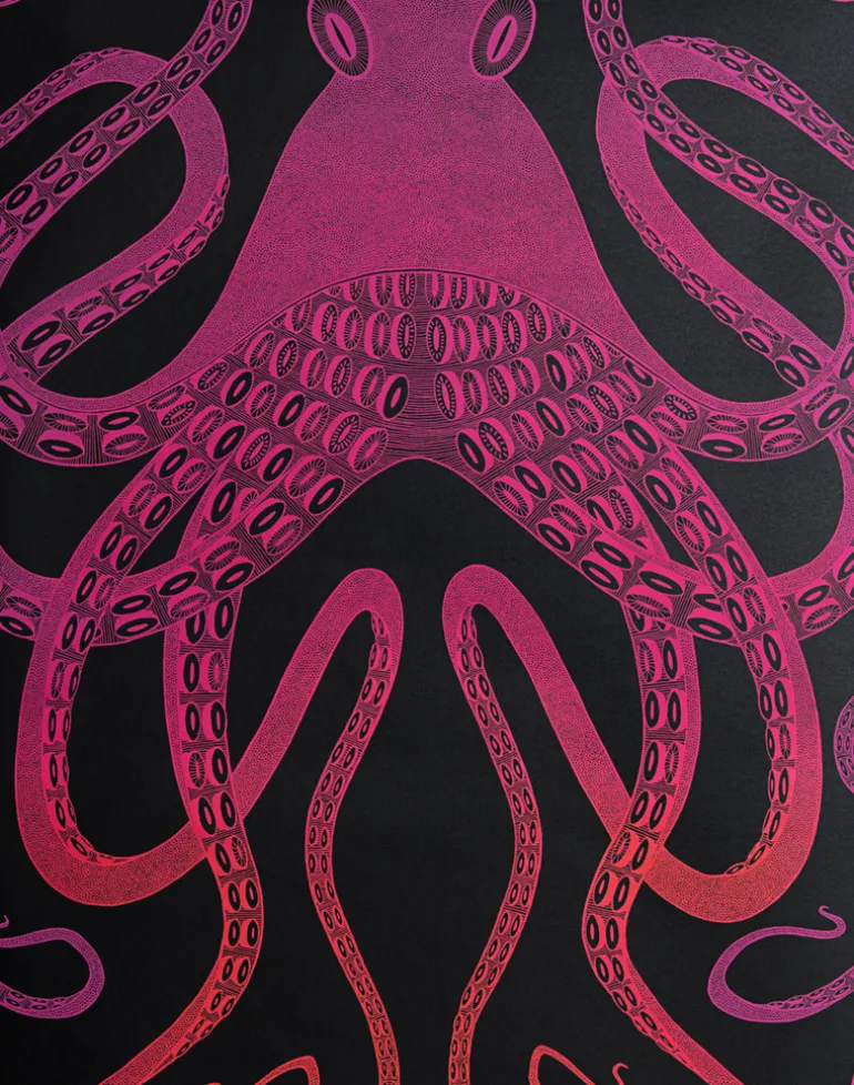 Bold, bright and vibrant, the Octopus pattern has been digitally printed using a two-tone ombre effect. From a fiery red to a hot pink, this wallpaper is certain to act as a wonderful focal point for those who favor an eclectic, characterful interior style.