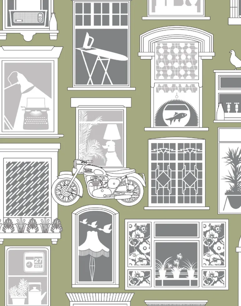 The wallpaper that launched our Saturday Night/Sunday Morning collection, One Day features iconic scenes from some of our favorite kitchen-sink dramas from the 40s, 50s and 60s, including: L-Shaped Room, Georgy Girl, Up the Junction, The Leather Boys, A Taste of Honey, Room at the Top, It Always Rains on a Sunday, Billy Liar, Look Back in Anger, Kes and Poor Cow.