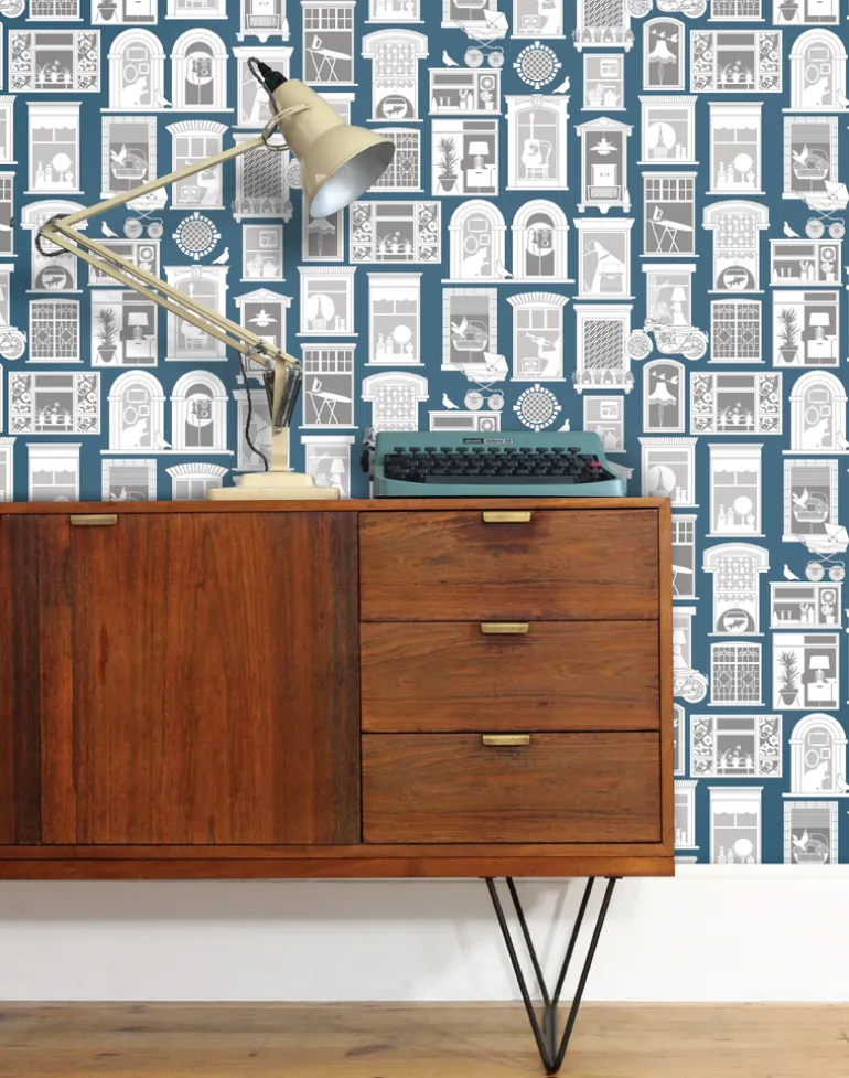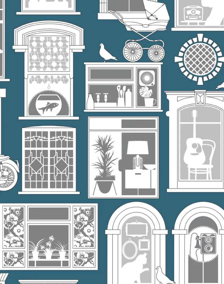 The wallpaper that launched our Saturday Night/Sunday Morning collection, One Day features iconic scenes from some of our favorite kitchen-sink dramas from the 40s, 50s and 60s, including: L-Shaped Room, Georgy Girl, Up the Junction, The Leather Boys, A Taste of Honey, Room at the Top, It Always Rains on a Sunday, Billy Liar, Look Back in Anger, Kes and Poor Cow.