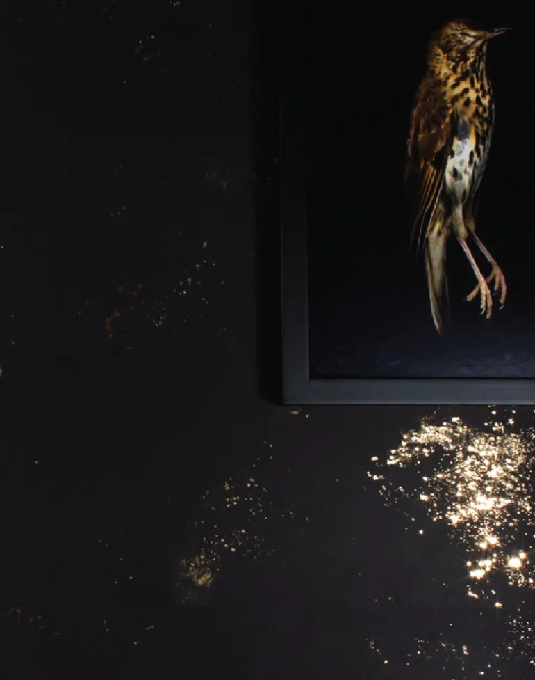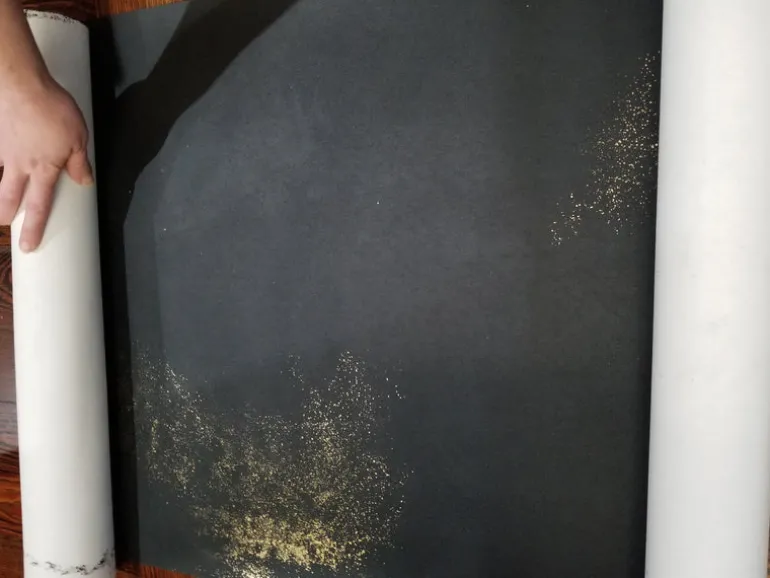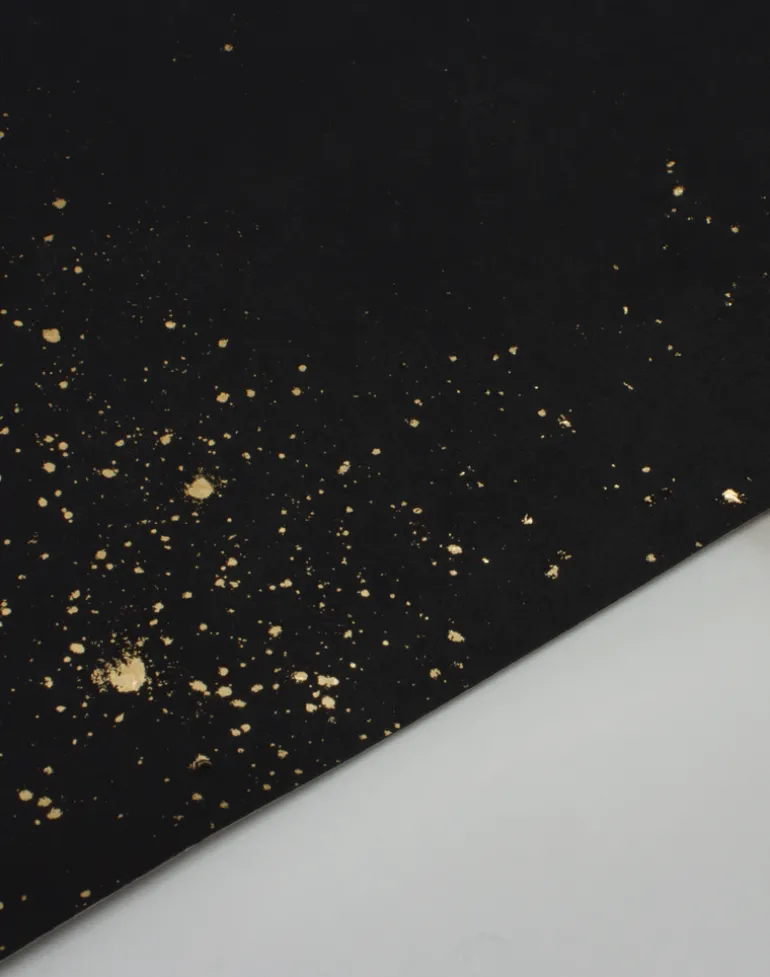 Black and gold fleck illustration on a black background