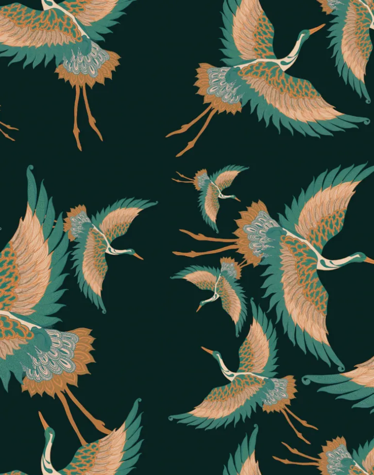 Exquisitely beautiful and elegant hand drawn cranes in flight was the inspiration for Tatie Lou’s signature design, Pachamama (Mother Earth). With an Art Deco feel there is so much movement in this design – Pachamama is just waiting to take flight on your walls or sofa!