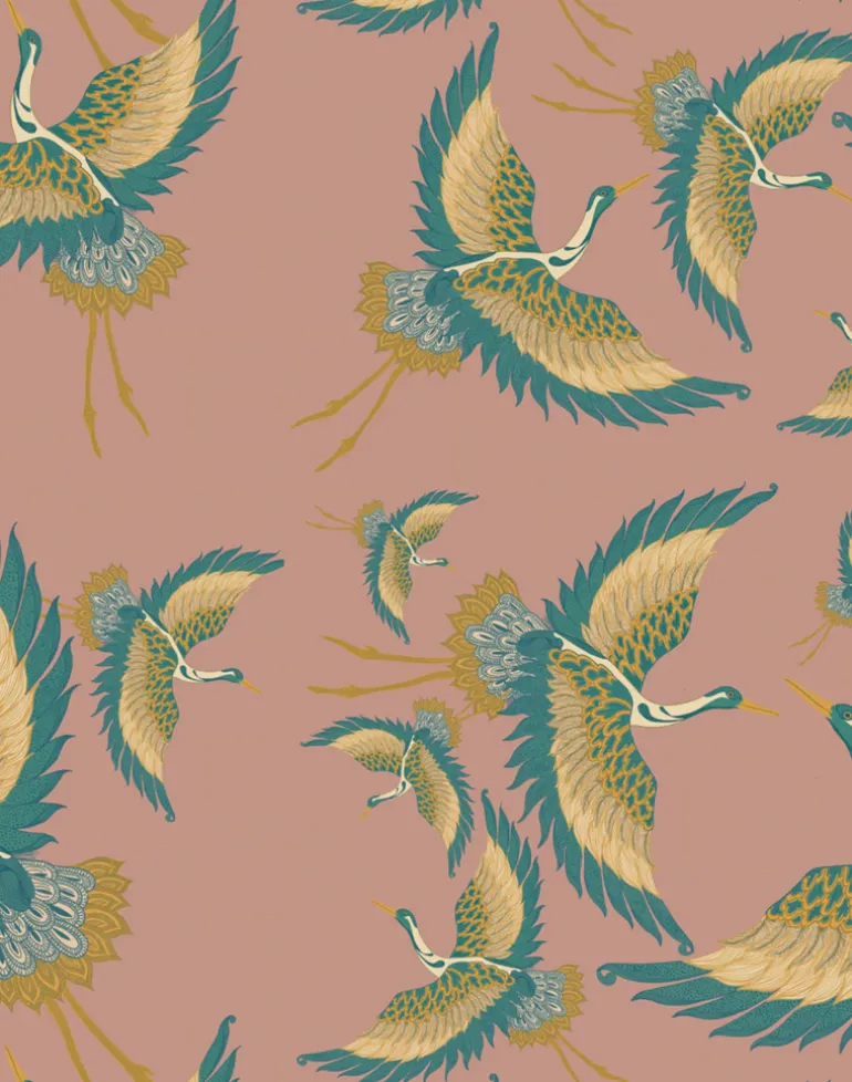 It has a gorgeous palette of rose, rich yellow and pale blue. It would look amazing as a feature wall or in an entire room to bring a sense of color and freshness.