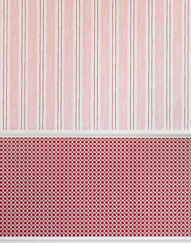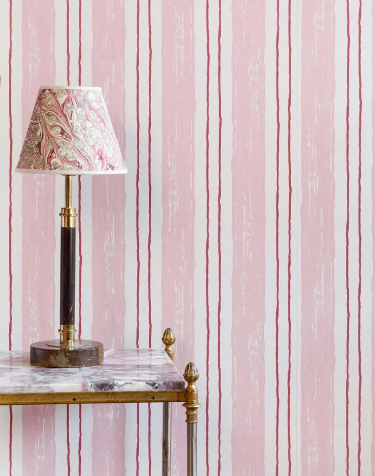 No home is complete without a stripe or two, and this is our take on an old classic. A lovely wide brush stroke with a painterly feel to the touch – due to our signature surface printing technique – flanked by a double row of hand-drawn pinstripes. Available in pink or blue.