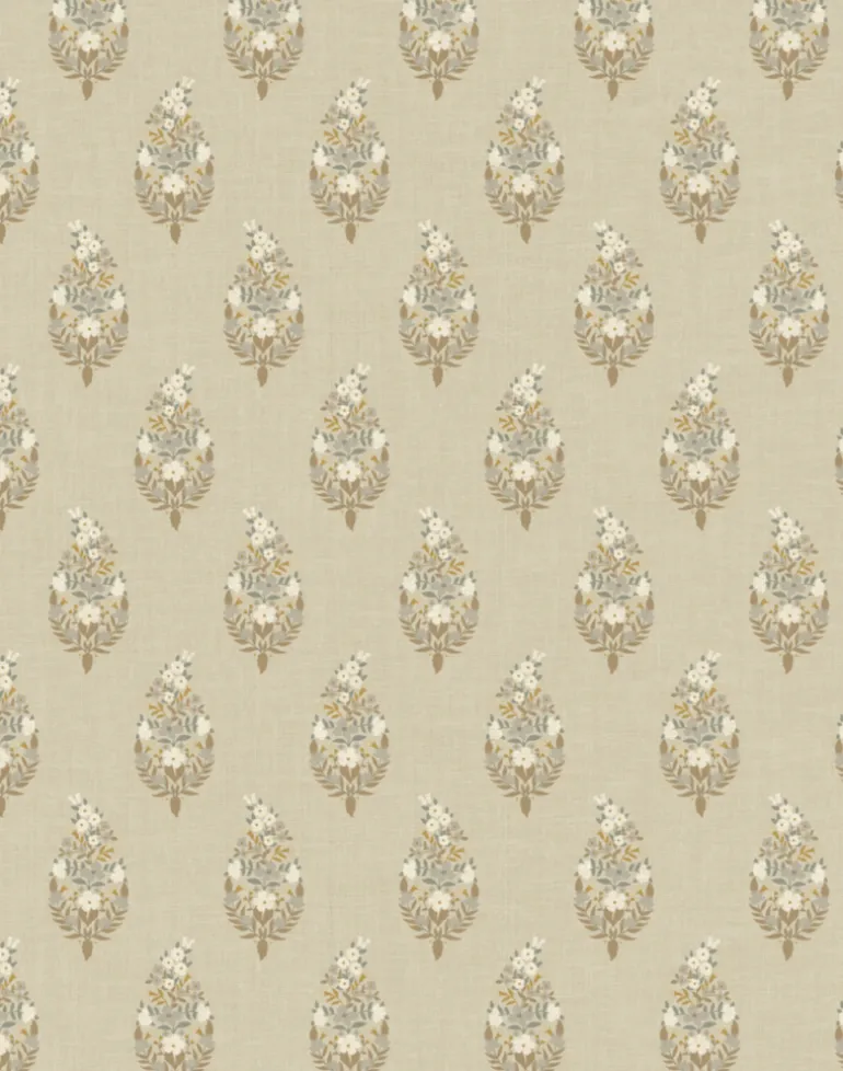 Small flowers and leaves create ornamental teardrop shapes on our fresh take on a traditional Paisley print.