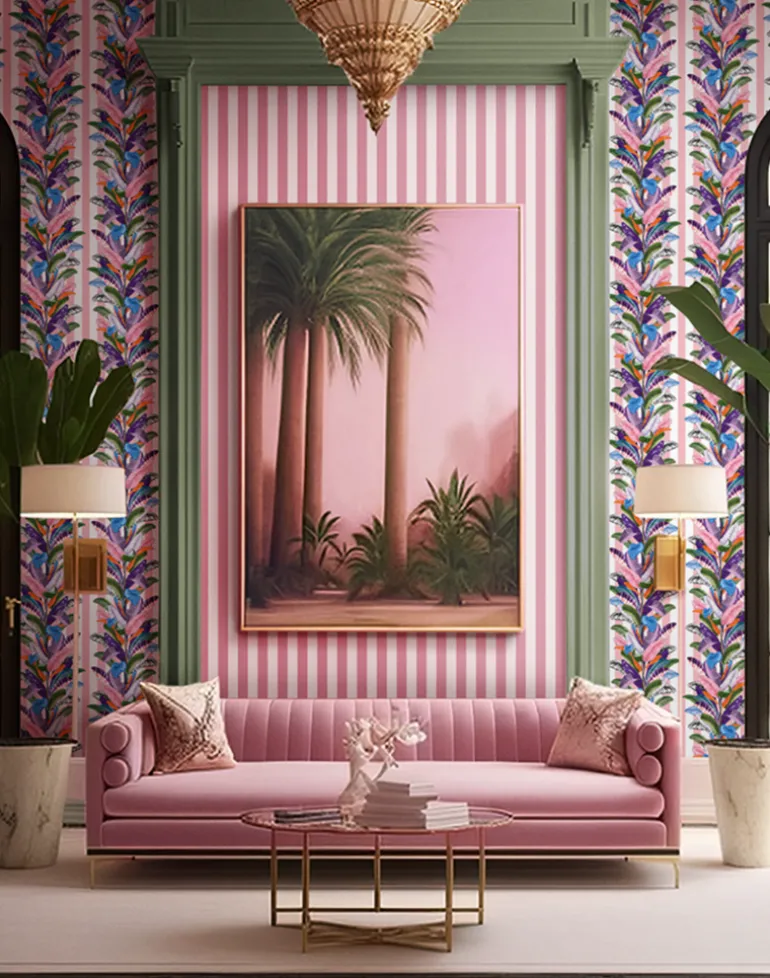 Welcome to a world of bold interior design, maximalist wallpapers and luxurious fabrics that are colorful, playful and fun! Liven up your walls with stripes, florals, botanicals, birds and animal prints that are sure to make a statement.