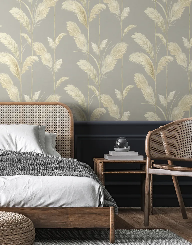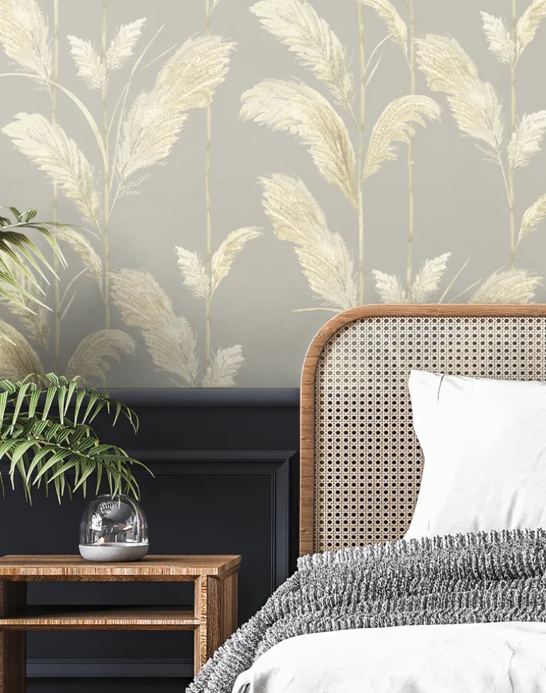 Soft muted tones show the beauty of Pampas grass, a perennial plant that can reach 4 meters in height. The long sharped-edged leaves fold at the midrib and form a dense tussock. A wonderfully designed wallpaper by Brand McKenzie that sits beautifully in any room within the home.