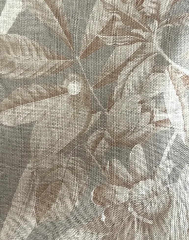 The Passiflora Collection is a wild and tropical labyrinth. Inspired by the Colombian rainforest, the detailed birds and butterflies are surrounded by oversized ferns deep in the tropics. The bold design is a large canopy creating a pattern that lures you into the South American jungle. Available in four colors, Ammonite, Antique, Sage and Vardo.
