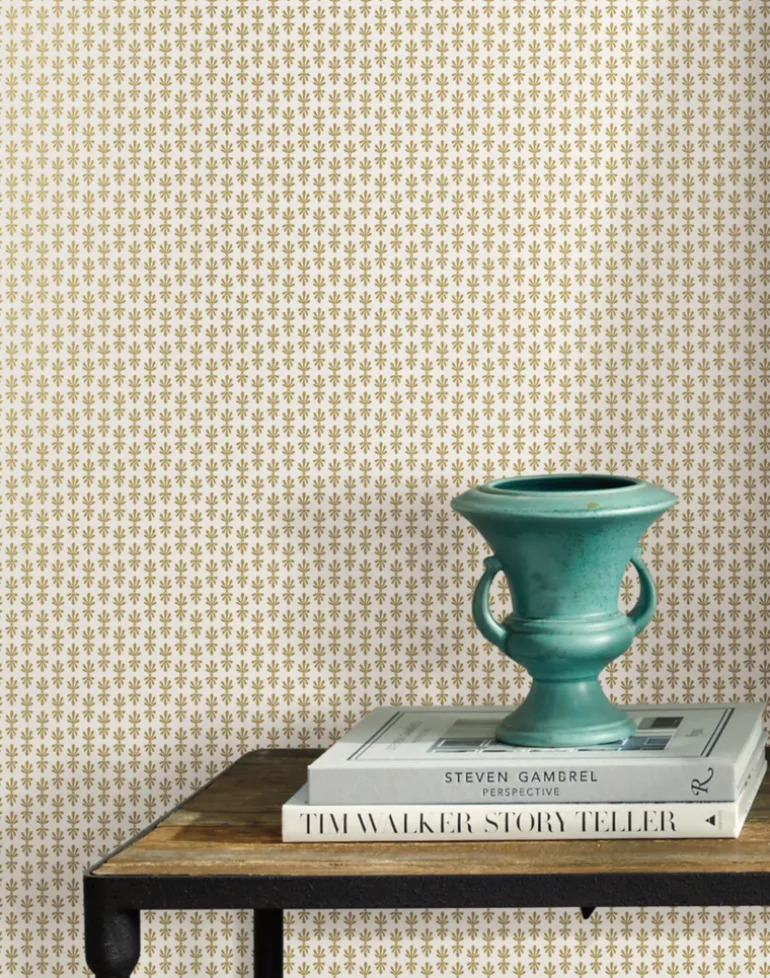 A grid of petal-inspired fleur-de-lis, the Petal print is perfect for rooms that need a subtle accent or as a companion pattern for statement florals. This wallpaper is screen printed and comes in 27 inch rolls with a 25.25 inch repeat.