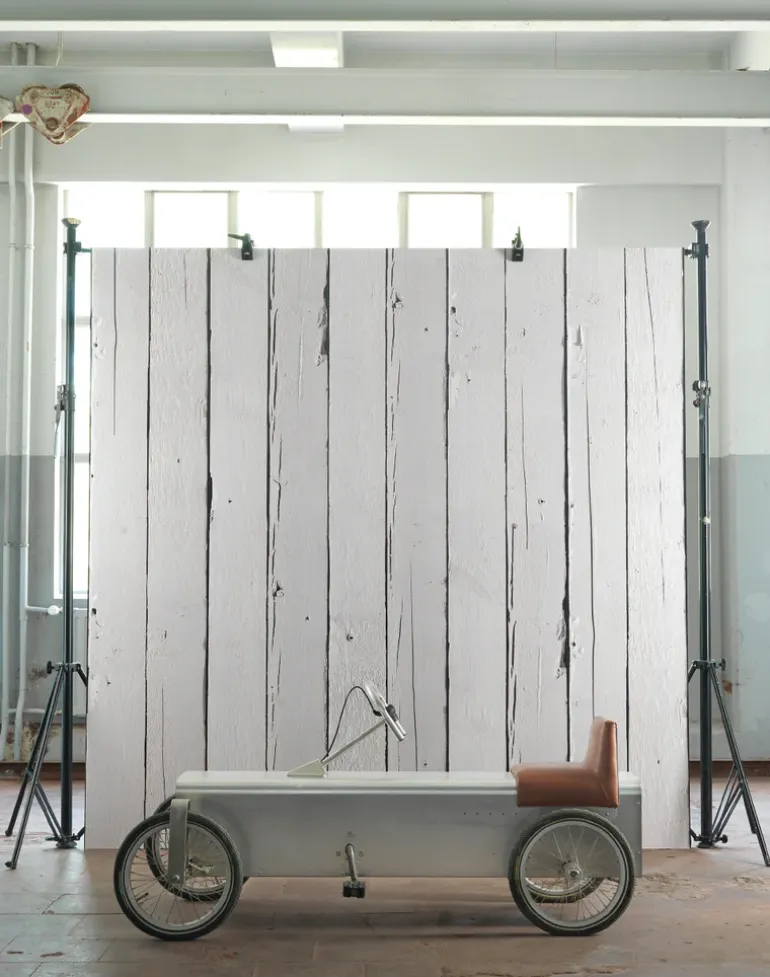 Three years after the launch of the original Scrapwood Wallpaper collection we are proud to introduce a renewed cooperation with designer Piet Hein Eek to create ‘Scrapwood Wallpaper 2’. The new collection consists of 8 designs and is based on the ‘waste’ furniture collection by Piet Hein Eek. It includes new elements like beams, cross wood and plank sides. Piet Hein Eek: “This new collection complements the previous one. For this first collection we just scanned some planks from my workshop and brought it to market. This time we aimed for a more conceptual approach. Working on this collection turned out to be much more interesting than the first time. We also chose a new, super luxurious matte finish so the wallpaper looks even more realistic than before.