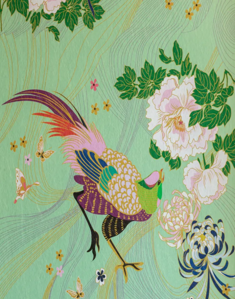 Our glorious phoenix, chrysanthemums and butterflies are set against a grounding black base. An uplifting, intricately detailed design that draws the eye and catches the attention again and again.
