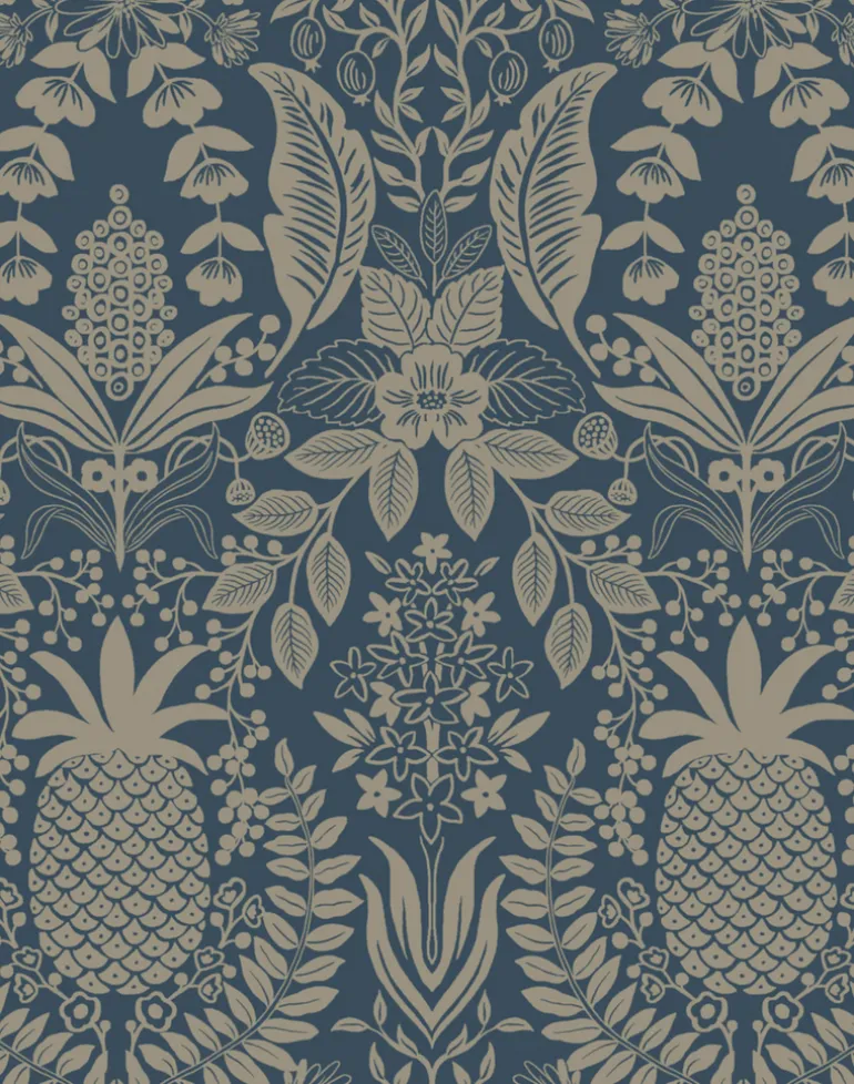 Reminiscent of traditional textile wallcoverings, our Pineapple Damask wallpaper features symmetrical trellises and pineapples, a traditional symbol of hospitality.