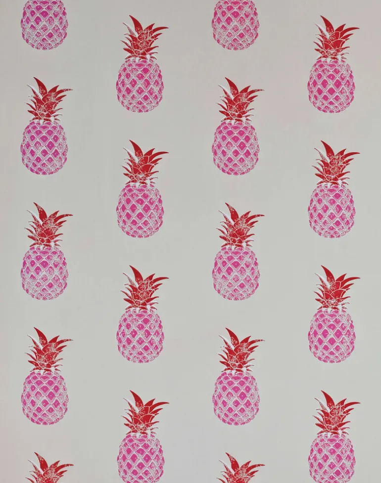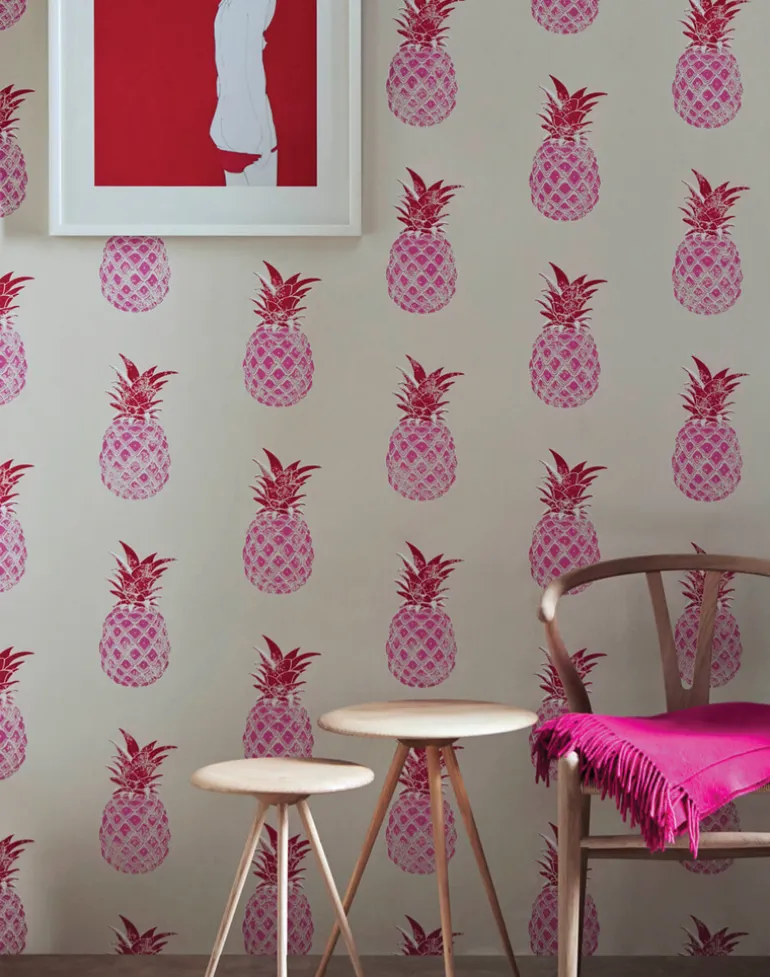 Often considered a symbol of hospitality in the home, Pineapple is available in a vibrant pink/red for a fresh contemporary vibe, or a deep charcoal with golden fruits for a moody raj-style room.