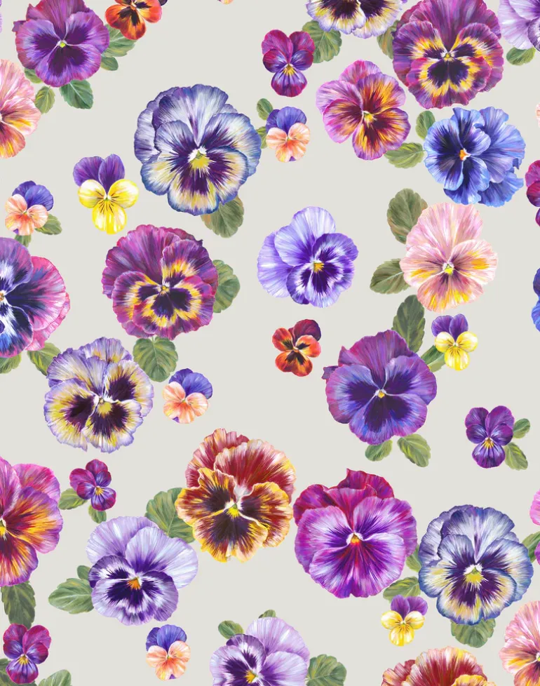 Multi-colored floral print on light colored background.