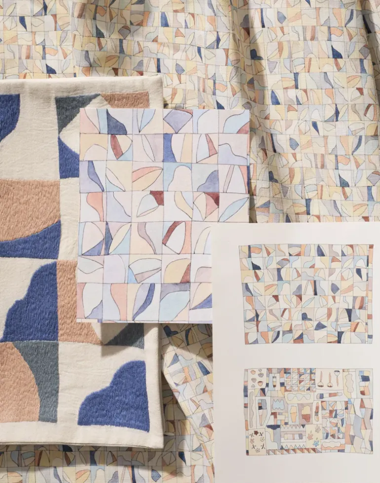 Our patterns, colors, and textures are meant to be mixed, matched, and layered for today’s modern home. Designs are informed and inspired by Feminist art, the Bauhaus, traditional craft, and vintage textiles.