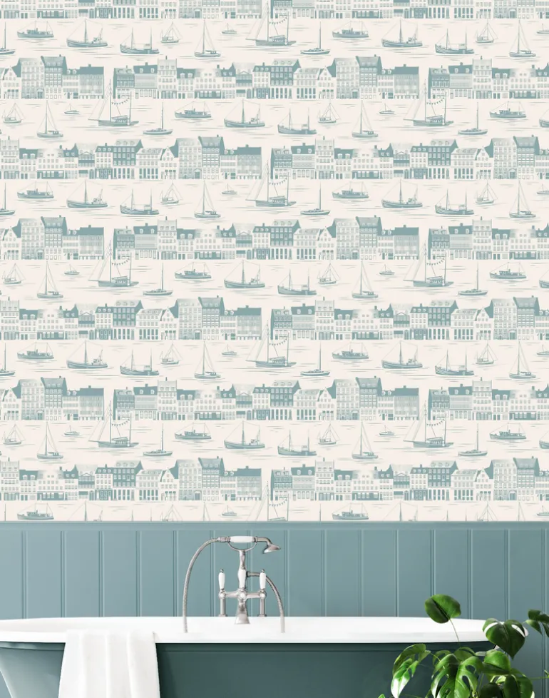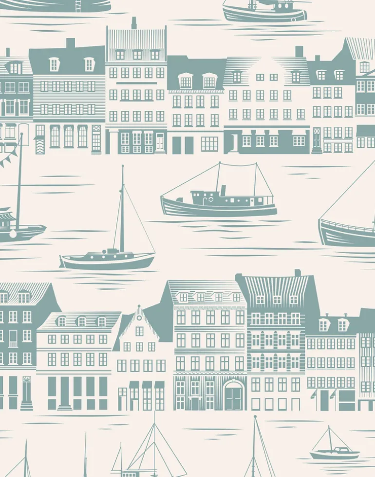 Inspired by our collection of hand-painted mid-century plates by Scandinavian artist Inger Waage, we visited Copenhagen one sunny Easter weekend. Our first sight of bustling Nyhavn, with boats sailing past its colorful townhouses, has stayed with us for many years – and became the inspiration for this design.