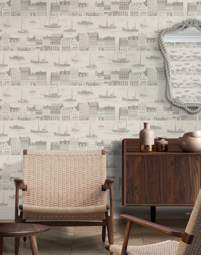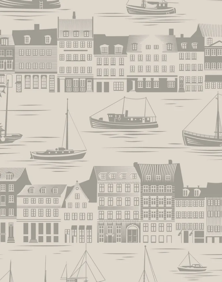 Inspired by our collection of hand-painted mid-century plates by Scandinavian artist Inger Waage, we visited Copenhagen one sunny Easter weekend. Our first sight of bustling Nyhavn, with boats sailing past its colorful townhouses, has stayed with us for many years – and became the inspiration for this design.