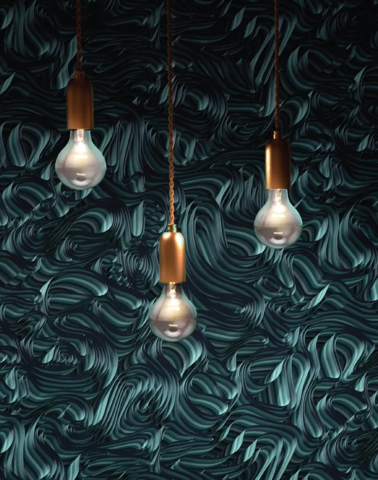 A real show stopper. Layers of rippled ribbon rolling across a room. Luxurious and exclusive in its design for a new twist in wall covering.