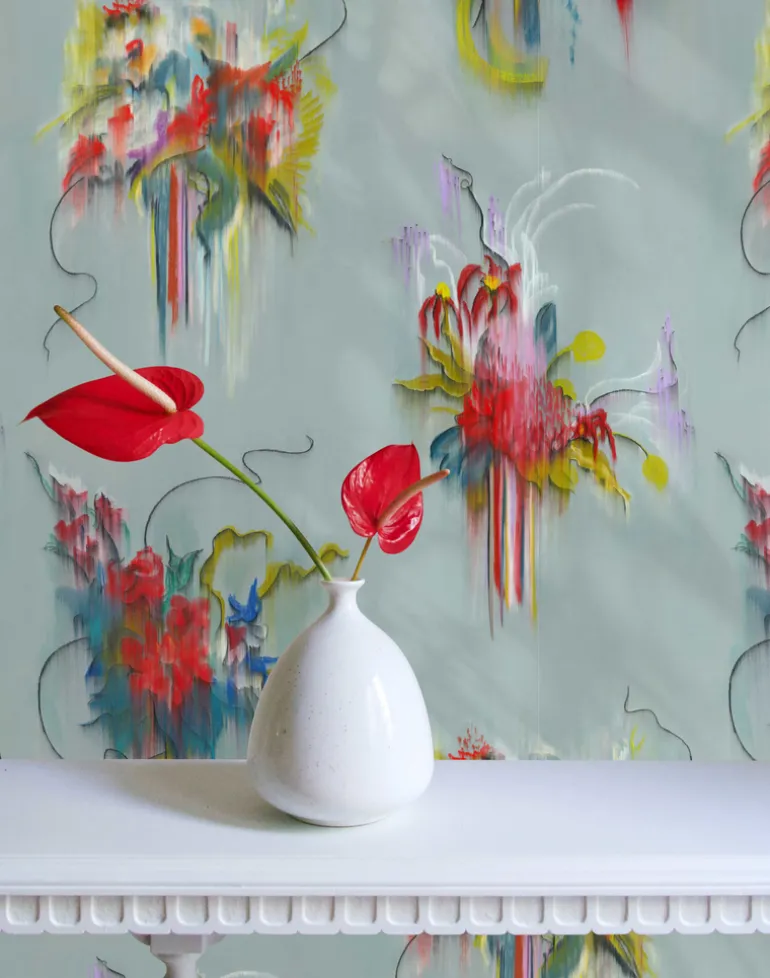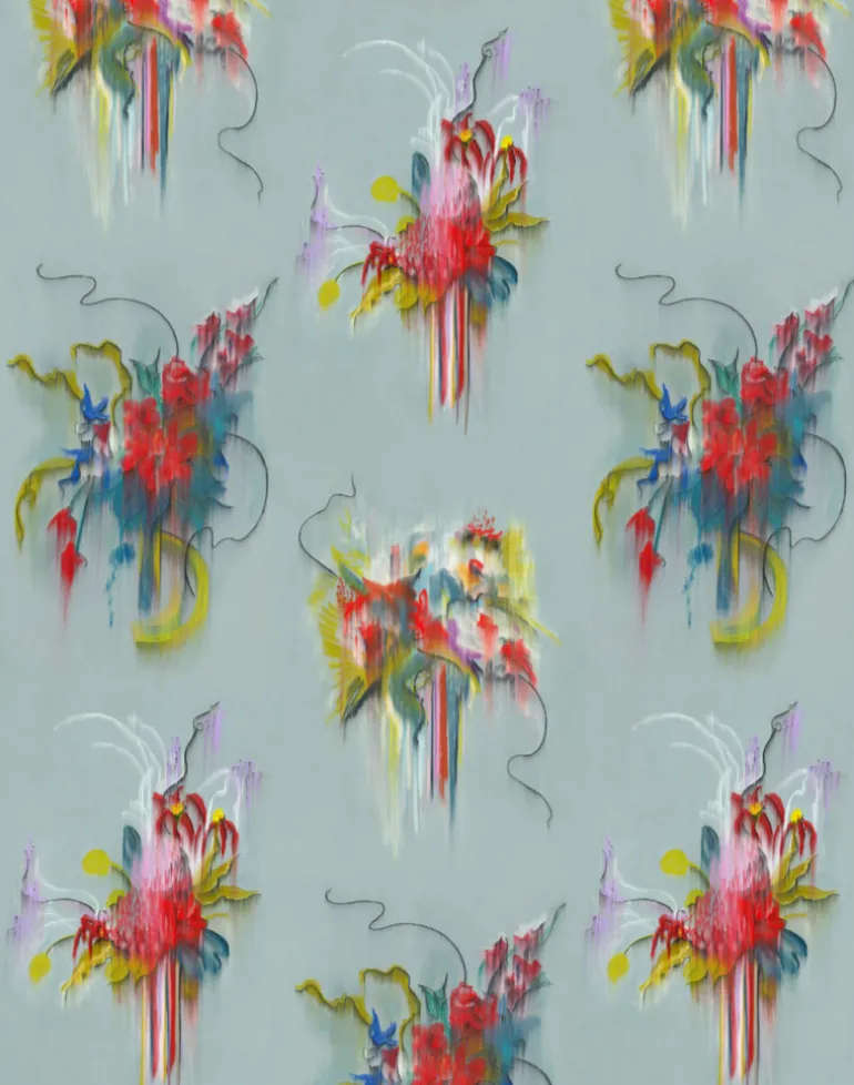 The Rae pattern is a gestural flower design drawn with vivid, soft pastels. The pigment is pulled from top to bottom – giving the imagery the same sensibility as gazing at the garden through a rainy window.