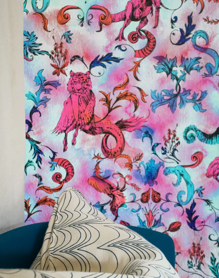 From the minds of children where anything is possible. An old world nod including rich tapestry inspiration mixed with original hybrid animal/beast creations. Colorway names are derived from musicians’ songs entitled with a beast inspiration. We also wanted our salute to Art Basel.