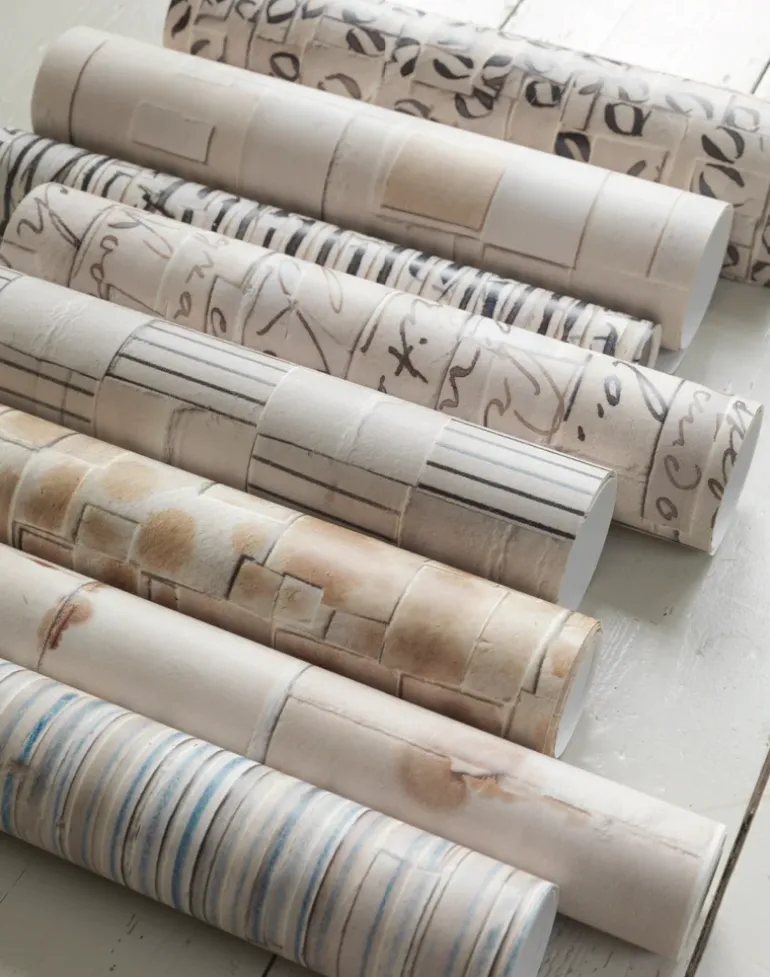 • Heavy-duty wallpaper with paper top-layer and non-woven backing. Glue is applied to wall