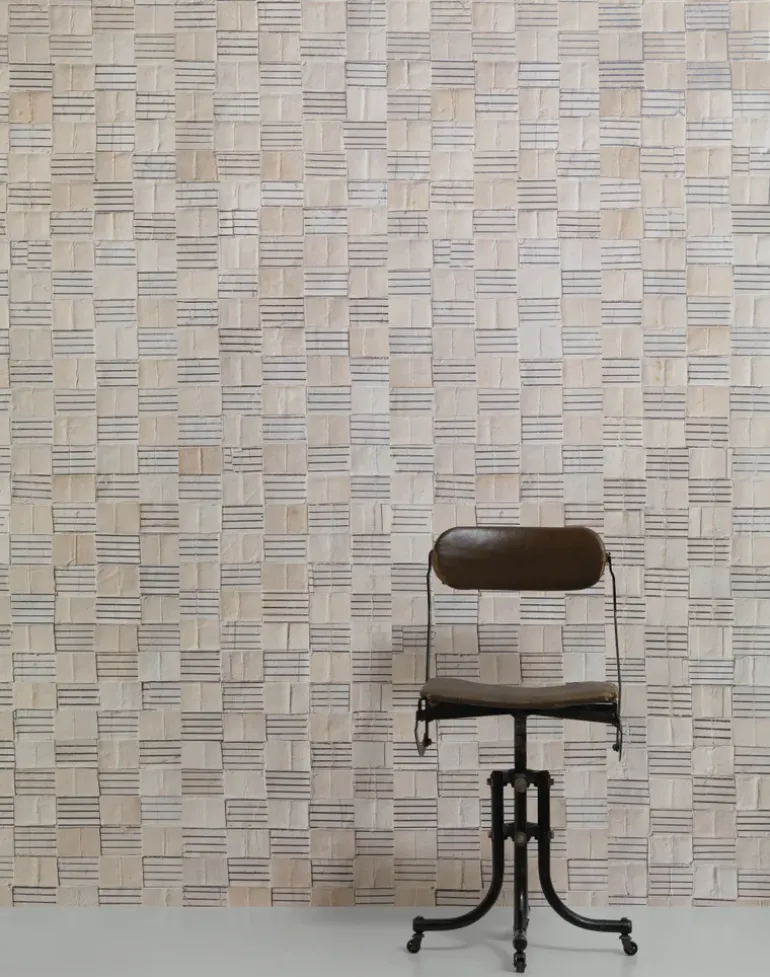 • Heavy-duty wallpaper with paper top-layer and non-woven backing. Glue is applied to wall