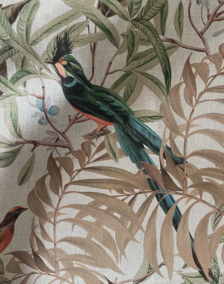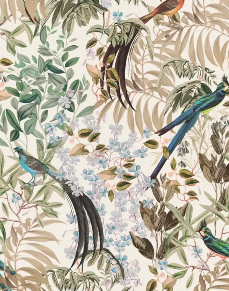 The Resplendent Woods Collection pays homage to one of South America’s most beautiful tropical birds, the Resplendent Quetzal. Its vibrant and lush plumage illuminates this antique botanical woodland, full of ferns and flowers and brings the natural world just that little bit closer to home. Available in four colors, Forest, Shaded White, Teal and Willow.