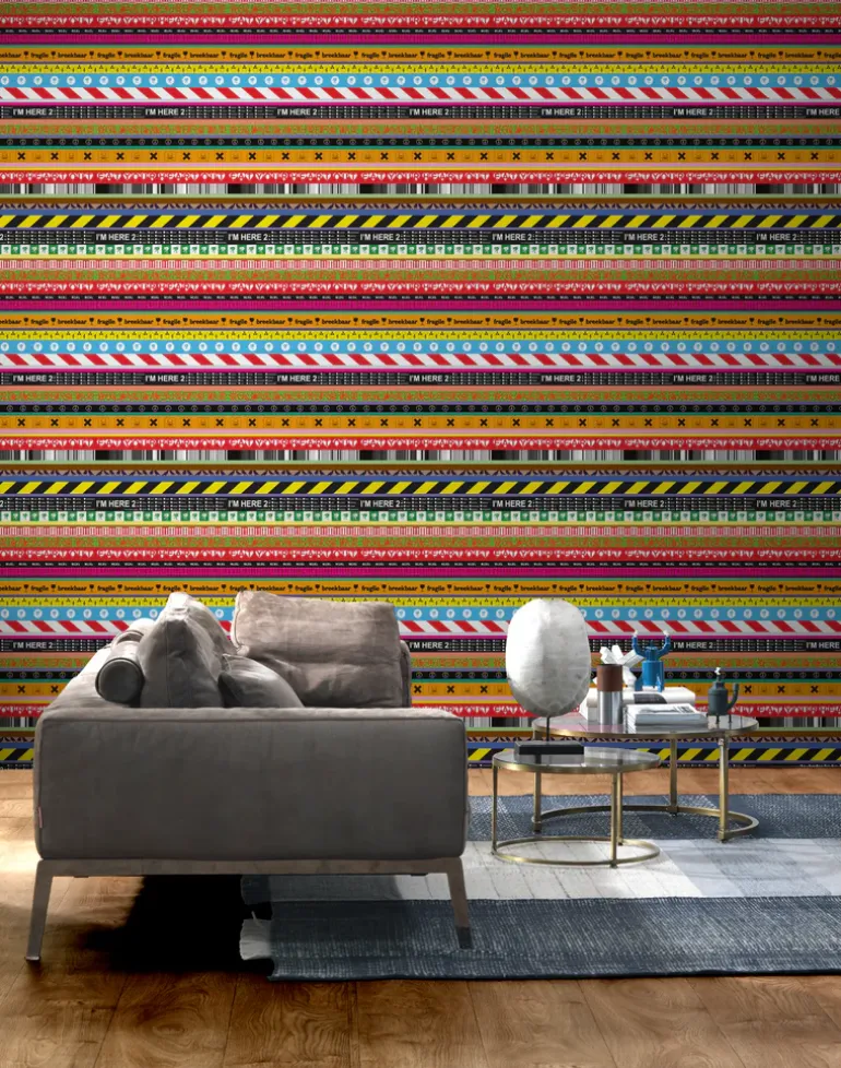 For NLXL Richard translated the concept into a wallpaper, clearly leaving the concept of the tape. One of the ‘tapes’ has a multiple choice question on it, asking for interaction with the user.
