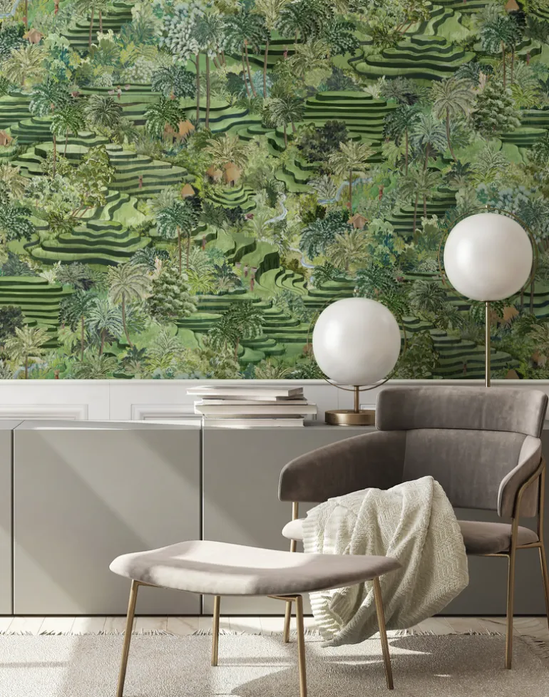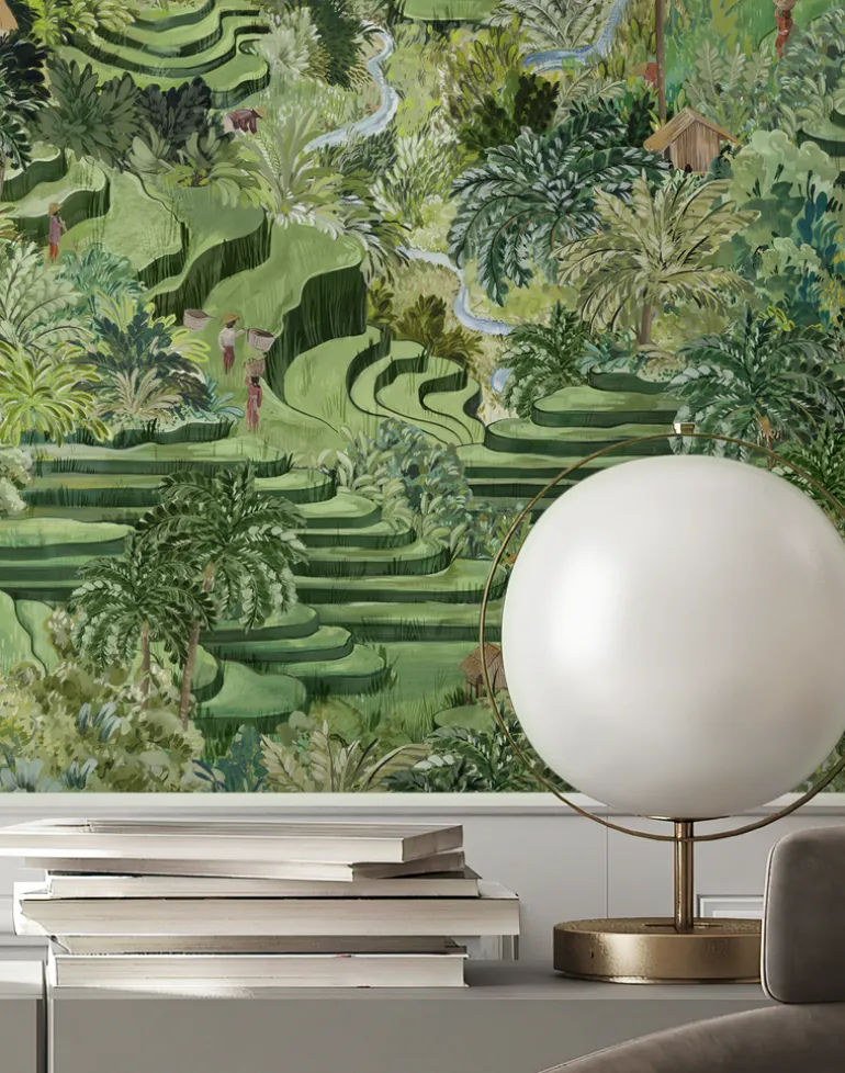 A larger scale version of Rice Terrace Inspired by the rice fields of Bali, Rice Terrace by Brand McKenzie shows the breathtaking scenery of beautiful boundless green landscapes, cascading as they flow and seemingly fall endlessly into eternity. This snapshot of life illustrates the enchanted life of far-off places no longer left for the imagination.