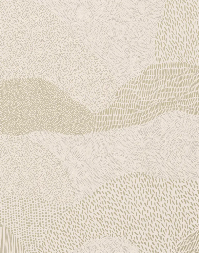 This two-color wallpaper is hand-screenprinted using water-based inks on recyclable paper. This paper is also available in four additional colorways.