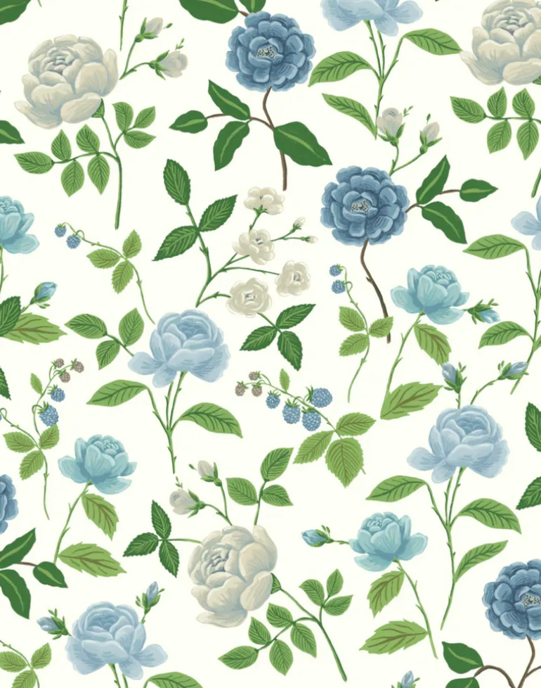 Inspired by vintage botanical drawings, Roses is a timeless pattern filled with layered details, classic colors, and playful stems of raspberries.