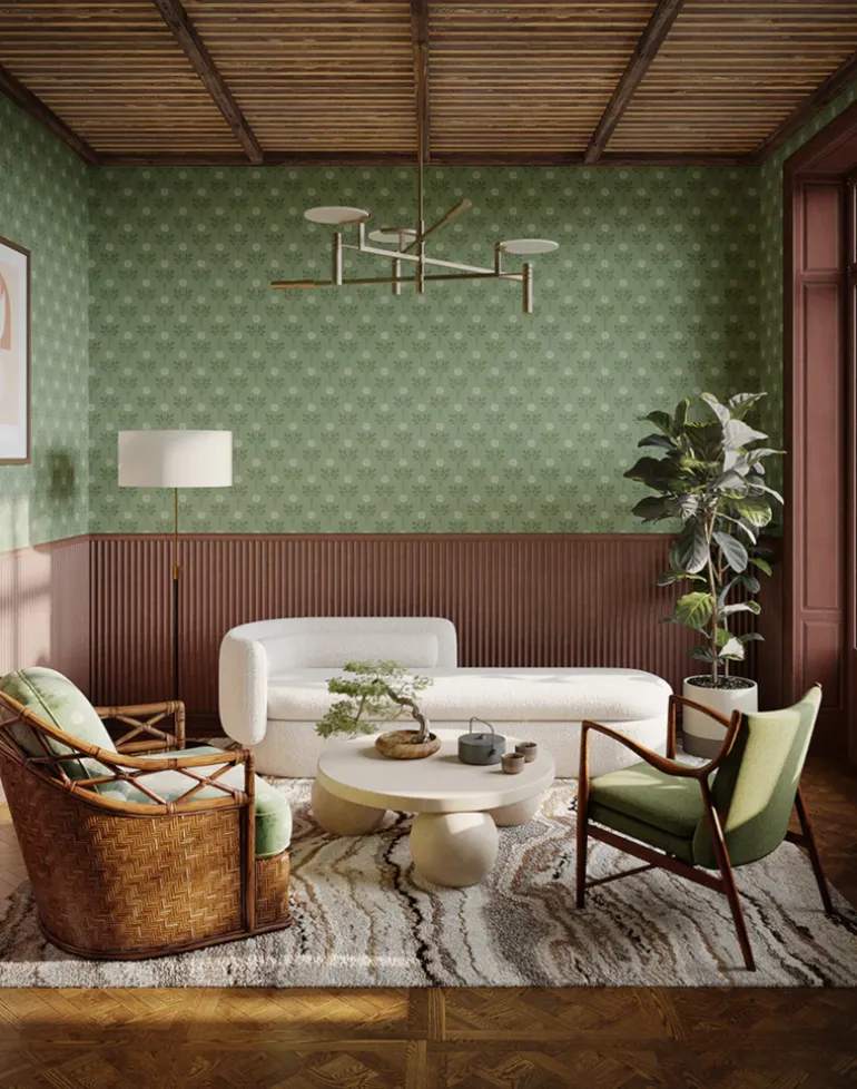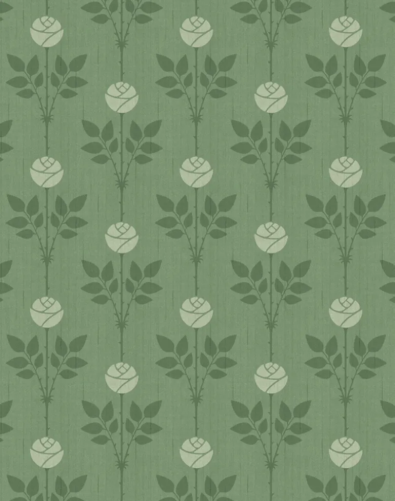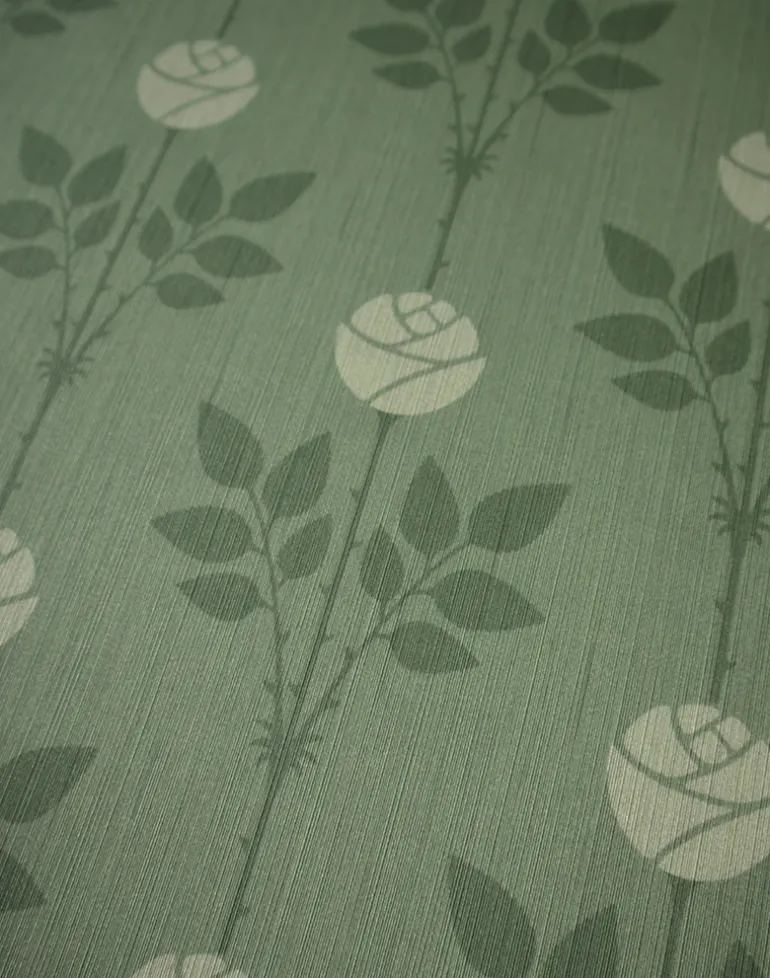 A perfect wallpaper for your living room, our luxury Rozalia wallpaper in Sophia Green features a cosy green base with delicate roses in off-white. Bring charm and character to your home with Rozalia.