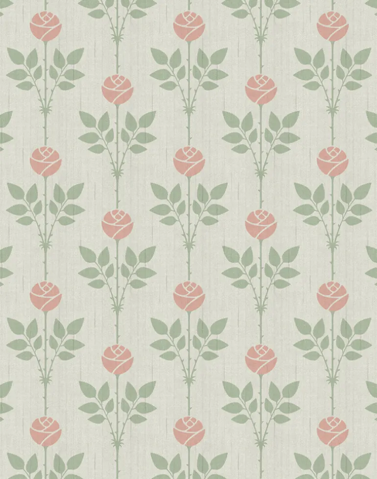 Bring charm and character to your home with our heritage Rozalia wallpaper in Vintage Blanche. This works perfectly as a bedroom or living room wallpaper with a graceful off-white base and delicate roses in green and pink.