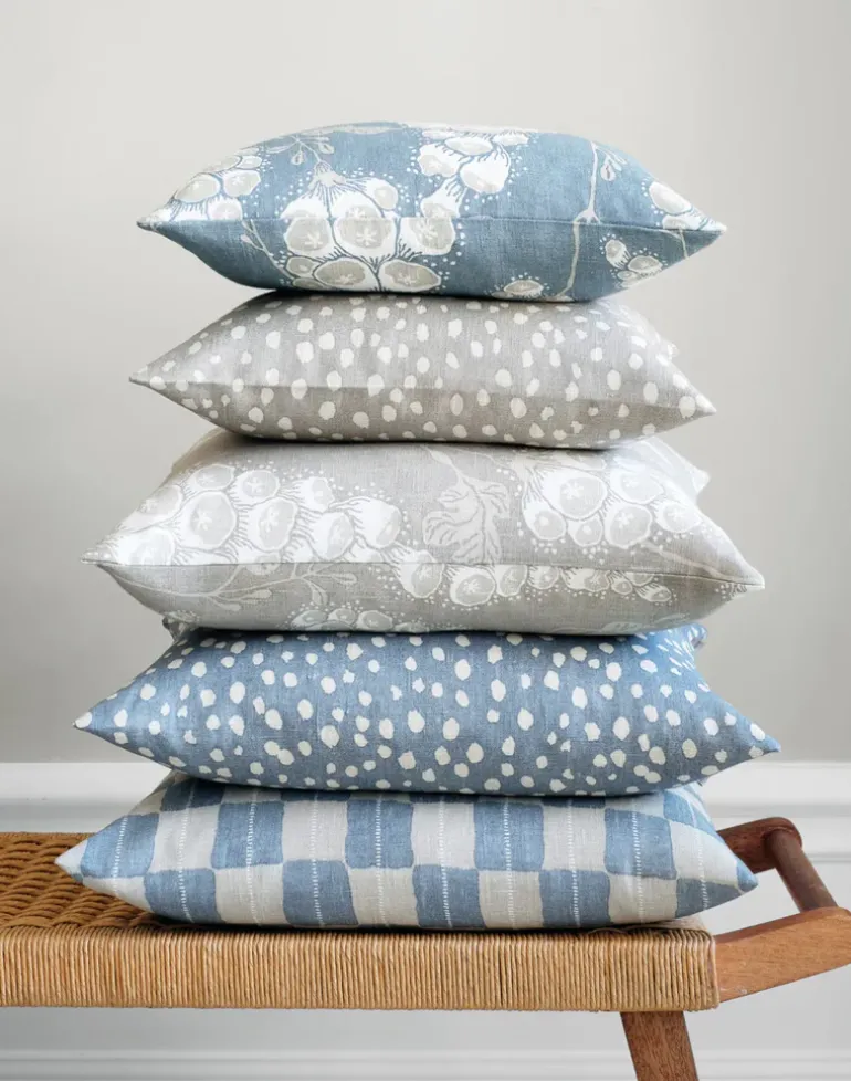 The process of drawing the petals is a transformation from the hand and mind to finding the simplicity and rhythm of dots in an organized chaos, just like in nature. Sakura Spring is printed by our Master printers on our beautiful and sustainable high quality linen weave, which is lively and make our patterns age with grace.