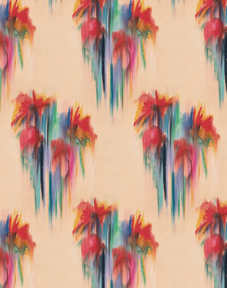 The Samantha pattern is drawn from a series of photographs taken on a rainy summer morning at Brooklyn Botanical Garden. From inside the glass Palm House, the garden colors blend together and create new, abstracted forms which alter the usual view into an entirely original and magical scene.