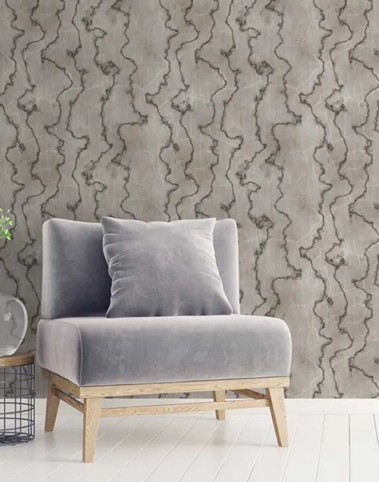 A luxuriously distressed stone wallpaper with stunningly lifelike details of the stone’s textures.