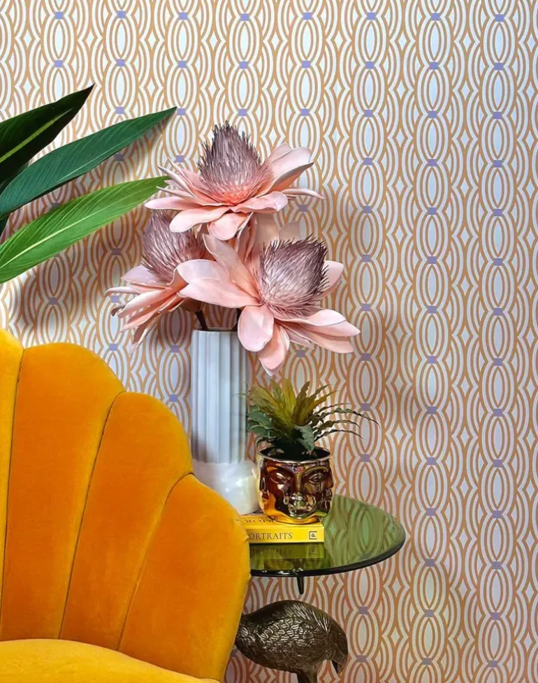 This subtle and luxurious wallpaper is a beautiful nod to art deco and a curvaceous geometric.
