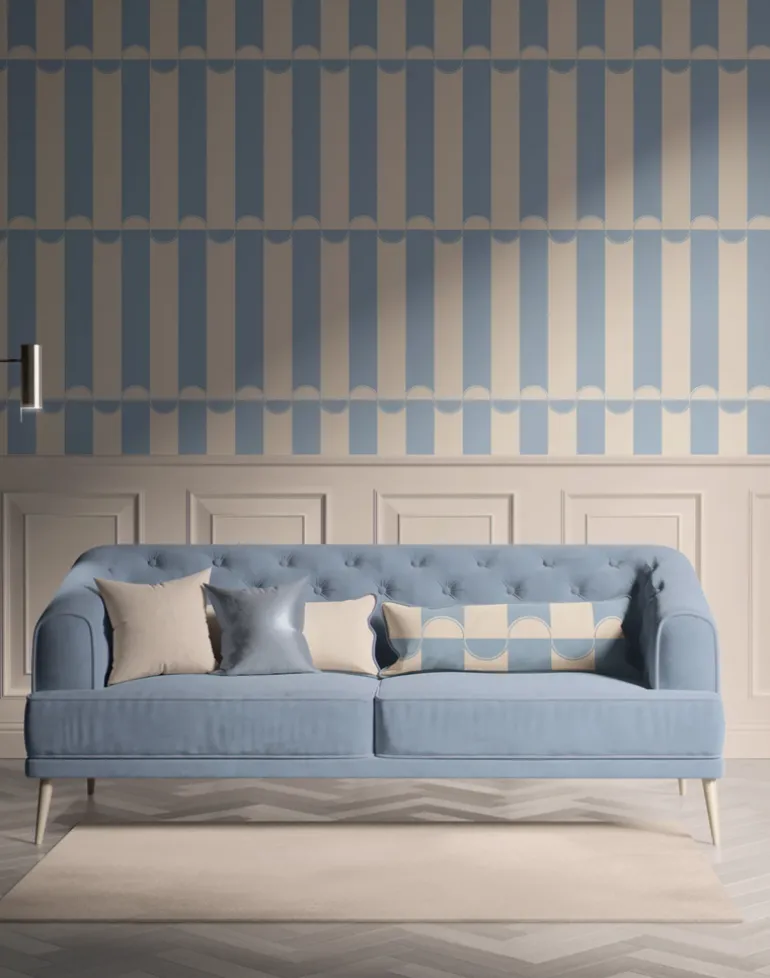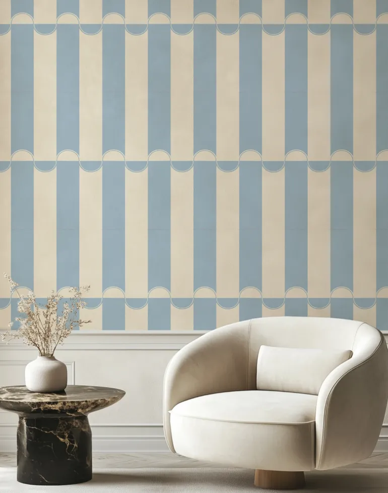 Enhance your interiors with the timeless charm of our Scallop Lane wallpaper collection, a perfect blend of bold patterns and elegant design. Featuring a unique scalloped stripe motif, this versatile wallpaper adds a sophisticated yet playful touch.