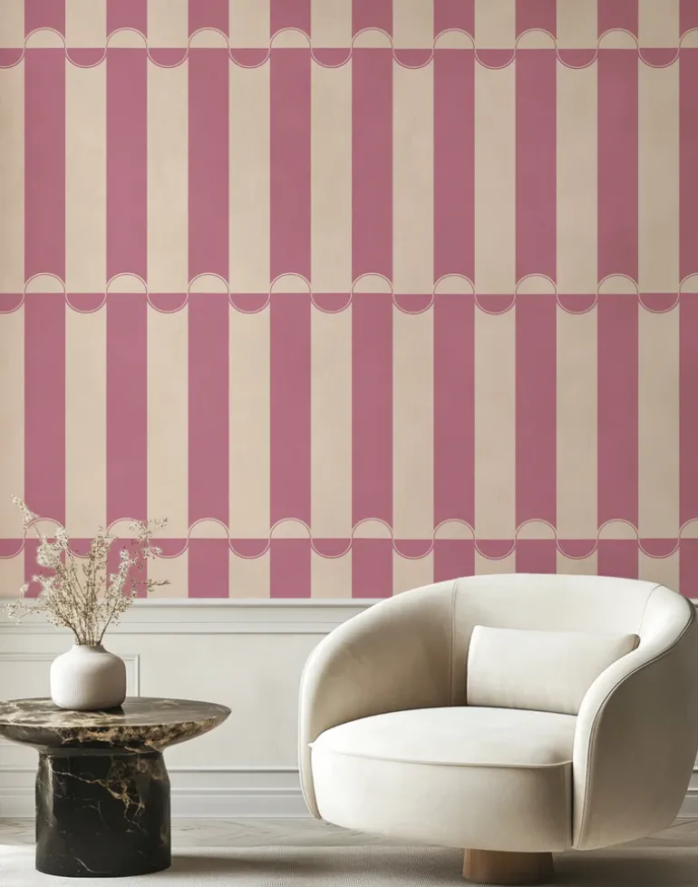 Enhance your interiors with the timeless charm of our Scallop Lane wallpaper collection, a perfect blend of bold patterns and elegant design. Featuring a unique scalloped stripe motif, this versatile wallpaper adds a sophisticated yet playful touch.
