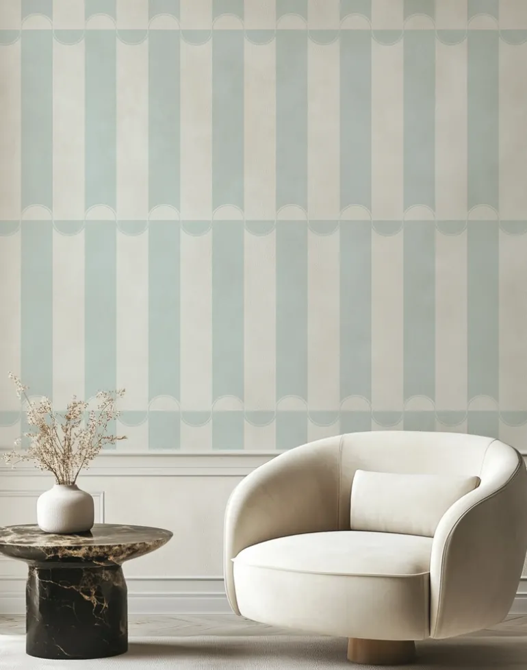 Enhance your interiors with the timeless charm of our Scallop Lane wallpaper collection, a perfect blend of bold patterns and elegant design. Featuring a unique scalloped stripe motif, this versatile wallpaper adds a sophisticated yet playful touch.
