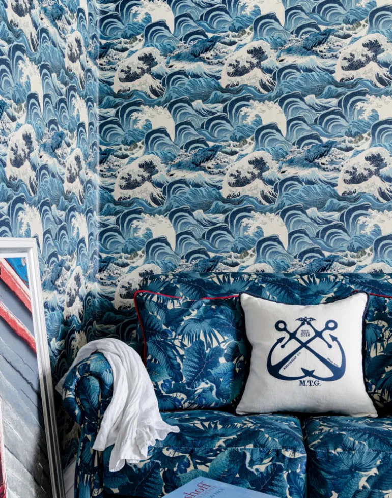 Curvy and graceful, SEA WAVES is inspired by old Japanese block prints, creating an ethereal feel that traces the outline of the deep sea waves. Available in neutral, taupe or blue hues, it delicately decorates the walls of any interior.
