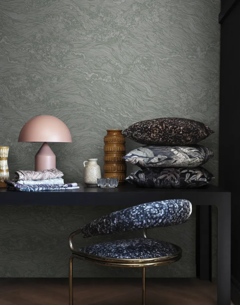 Digital enlargement of handmade patterns, illustrations and paintings make LEMON wallpapers truly unique. Here is a pattern from the LemonxAureum collection.