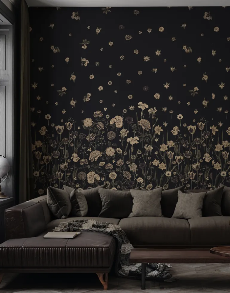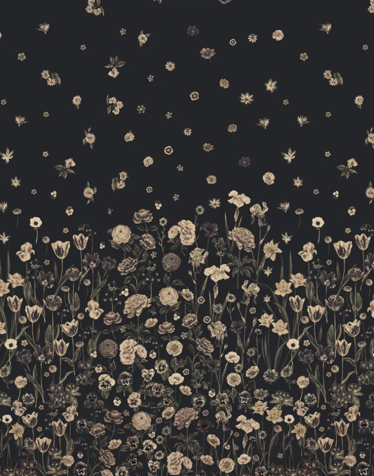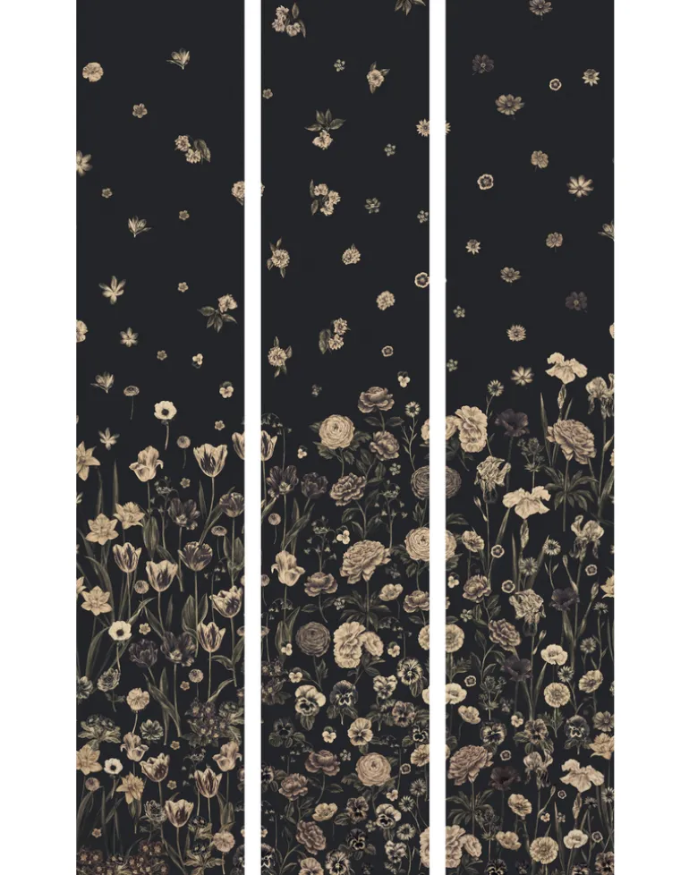 This mural showcases nature’s flowering from the onset of spring to the peak of summer. Fragile crocuses and anemones emerge through a light coating of frost while daffodils begin to arise. Early signs of life representing rebirth and renewal following the frigid winter. Bare trees showing signs of green buds, gradually awakening as the temperature starts to rise. Vibrant fields of tulips and gentle bluebells blossoming under soft sunlight, illustrated in bright hues symbolizing nature’s revival. Cherry blossoms and apple flowers, ranunculus and golden poppies, creating a vibrant array of colors representing spring at its finest. The arrival of new green grass as summer draws near. Peonies, laden with their sizable, tiered flowers in whites, pinks, and reds, create a focal point alongside irises reaching upward, cornflowers contributing rich blues and purples while vibrant poppies burst forth with petals in striking reds and oranges. Mixing flowers throughout the months reflects the flow of time and narrates the tale of nature’s rejuvenation, expansion, and plenty.