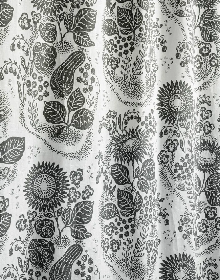 The September design is a tribute to Camilla’s favorite organic garden in her hometown Stockholm, Rosendals Trädgård. It is an oasis located on a quiet island in the middle of the city, where the harvest and floral beauty is shared with the locals. September is drawn by hand and is printed by our Master printers on our beautiful and sustainable high quality linen weave, which is lively and make our patterns age with grace.